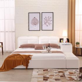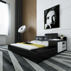 创意真皮床双人床现代婚床1.8米1.5榻榻米床储物床皮艺床软床大床 床侧储物 升降靠背 双ll价格 更低